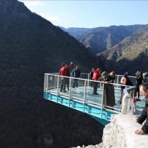 تعتبر الشرفة الزجاجية المعلقة التي تطل على أخدود جبلي في بلدة صفران بولو التابعة لمحافظة كارابوك في منطقة غرب البحر الأسود من أهم نقاط الجذب السياحي في تركيا.