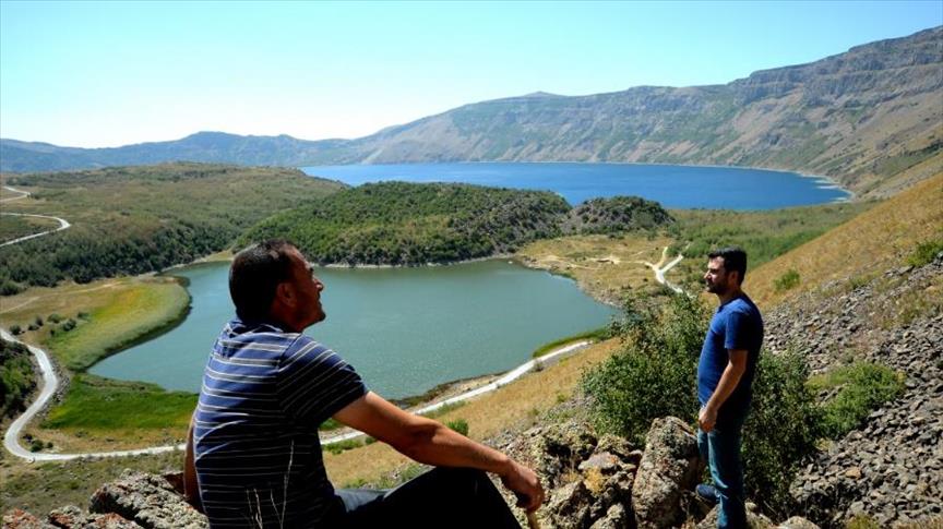 تأسر بحيرة نمرود البركانية في قضاء تطوان بولاية بتليس، جنوب شرقي تركيا، بمناظرها الخلابة ألباب السياح المحليين والأجانب الذين يحرصون على زيارتها كل عام.