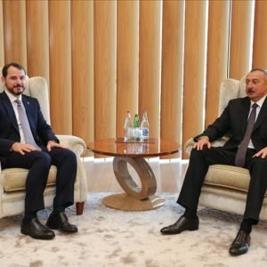 وبحسب بيان الرئاسة، فإن علييف وألبيرق تبادلا خلال اللقاء الثنائي الآراء حول مشاريع الطاقة المشتركة بين تركيا وأذربيجان.