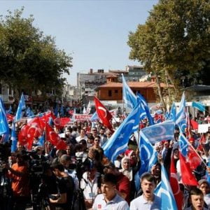 شارك المئات، اليوم الأحد، بمظاهرة في مدينة إسطنبول التركية للمطالبة بحماية التركمان في مدينة كركوك العراقية.