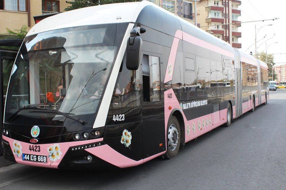 لأول مرة في عموم تركيا.. بلدية مدينة #ملاطيا تبدأ بتسيير حافلات للنقل العام وردية اللون خاصة بالنساء