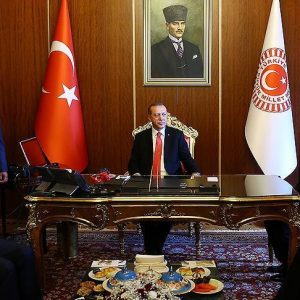 التقى الرئيس التركي رجب طيب أردوغان ورئيس الوزراء بن علي يلدريم، وزعيم حزب الحركة القومية دولت بهجه لي، برئيس البرلمان التركي إسماعيل قهرمان، اليوم الأحد.