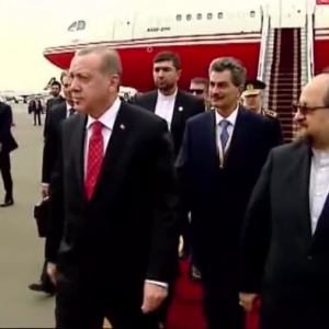 وحطّت طائرة الرئاسة التركية الخاصة “طور” في مطار مهرأباد في تمام الساعة 11:20 بتوقيت إسطنبول (09:20 بتوقيت غرينتش).