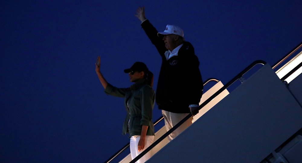 أثارت ميلانيا ترامب، زوجة الرئيس الأمريكي جدلا بارتدائها نظارة شمسية أثناء عودتها ليلا إلى البيت الأبيض برفقة زوجها.