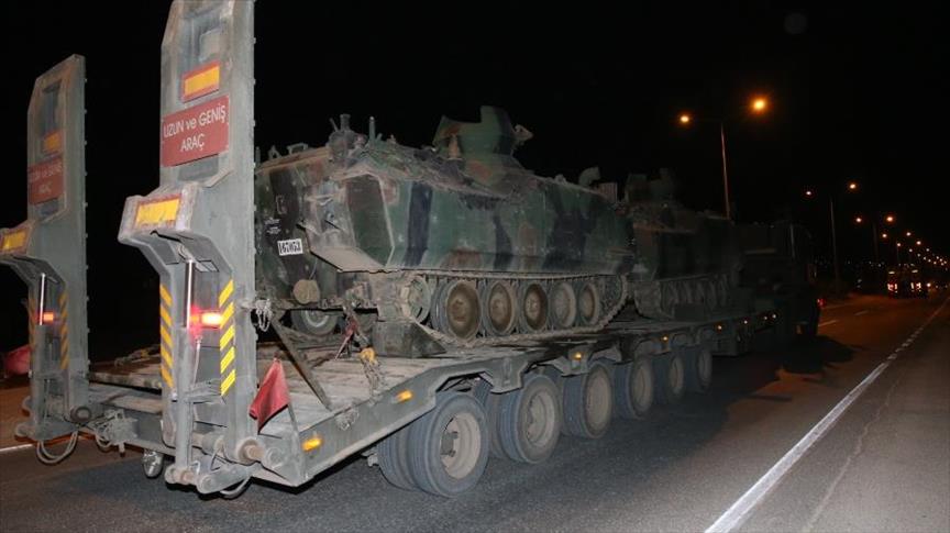 وأشار مراسل الأناضول إلى أنّ العربات والمدرعات العسكرية وناقلات الجنود ووحدات الكوماندوز التركية القادمة من ولايات مختلفة في تركيا، تمركزت اليوم السبت على الشريط الحدودي في ريحانلي.
