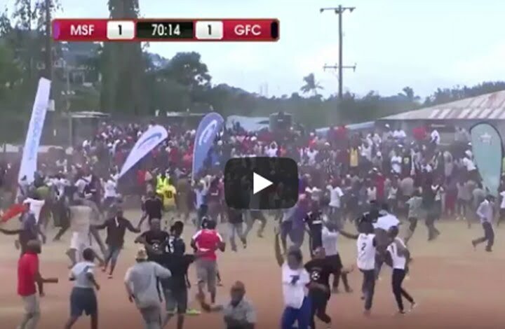 لقطة طريفة تلك التي عاشها أحد الملاعب التنزانية، خلال مباراة في دوري كرة القدم، بعد أن اجتاحت الجماهير أرضية الملعب احتفالا بهدف سجل بطريقة “كوميدية”.