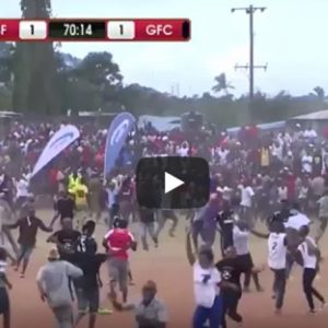 لقطة طريفة تلك التي عاشها أحد الملاعب التنزانية، خلال مباراة في دوري كرة القدم، بعد أن اجتاحت الجماهير أرضية الملعب احتفالا بهدف سجل بطريقة “كوميدية”.