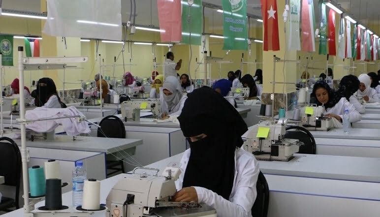 وساهمت جمعية “حلف الفضول” (أهلية تركية)، ومقرها “أقجة قلعة”، وجمعية “السلامة” (كويتية مقرها الكويت) في إنشاء الورشة التي تعمل بها 396 امرأة تركية وسورية إضافة إلى أربع عراقيات.