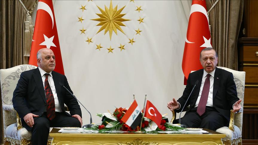 جاء ذلك في تصريحات صحفية أدلى بها أردوغان عقب لقائه رئيس الوزراء العراقي حيدر العبادي في المجمع الرئاسي بالعاصمة أنقرة.
