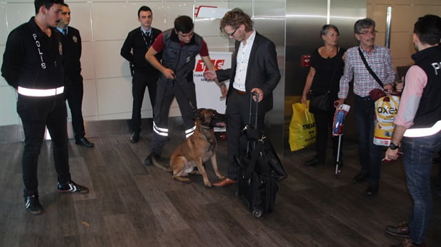 وقامت السلطات التركية الساعة العاشرة من مساء امس بتفتيش المسافرين الالمان القادمين من برلين، في مطار أتاتورك الدولي بإسطنبول، بكلاب بوليسية، واحد تلو الاخر بعد ختم جوازات سفرهم.
