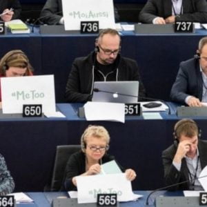 وأثناء نقاش عن التحرش الجنسي في البرلمان الأوروبي الأربعاء، رفع عدد من عضوات البرلمان الأوروبي لافتات كتب عليها “أنا أيضا” تضامنا مع ضحايا التحرش الجنسي وللإعراب عن أنهن ايضا تعرضن للتحرش.
