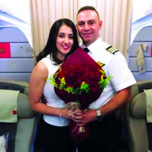 اعتاد مستخدمو الطائرات حول العالم على الاستماع إلى إرشادات السلامة والأمان التي تقدمها طواقم الطائرة قبل الإقلاع، ليتبعها رسالة ترحيبية من كابتن الطائرة، التي تحمل معلومات عن وجهتهم وزمن الطيران وغيرها، إلى جانب تمنياته بالوصول إليها بالسلامة. إلا أن مساعد كابتن طائرة «الملكية الأردنية» التي اتجهت، أمس، من عمان إلى دبي، لم يكتف بالرسالة الترحيبية التي أطلقها للركاب، ليفاجئ الجميع خلال إعلانه بطلب غريب، وهو خطبة فتاة كانت تجلس بين الركاب، حيث قال الطيار في إعلانه للركاب: «إن رحلة اليوم مميزة بالنسبة لي وذلك لوجود من أحب على متنها»، طالباً يدها للزواج وأن تكون رفيقة دربه للأبد، متمنياً موافقتها.