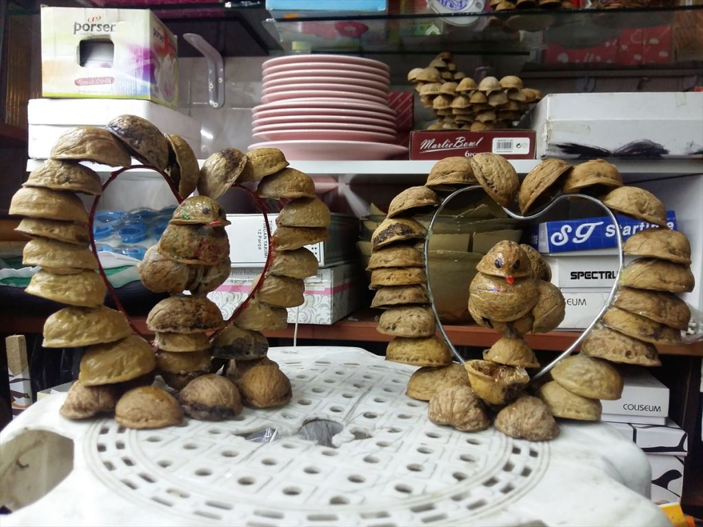وقال بالا في حديث للأناضول إنه يصنع من قشور الجوز أشياء كثيرة بينها مجسمات حيوانات، ومحفظات أقلام، وساعات، وسلال.