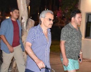 MUGLA, TURKEY - AUGUST 16: Saudi Prince Al-Waleed Bin Talal bin Abdulaziz al Saud (C) arrives at a restaurant at Marina district with Advisor to the Turkish Prime Ministry, Taha Genc (R) at Bodrum in Mugla Province of Turkey on August 16, 2017. Saudi Prince and his family arrived in the resort on August 14 for holiday. (Photo by Ali Balli/Anadolu Agency/Getty Images)
