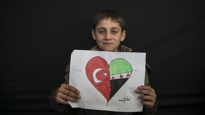بأنامل صغيرة بريئة، قام أطفال سوريون، في ولاية هطاي جنوبي تركيا، بإعداد رسومات أعربوا من خلالها عن حبهم لتركيا التي استضافتهم على أراضيها.