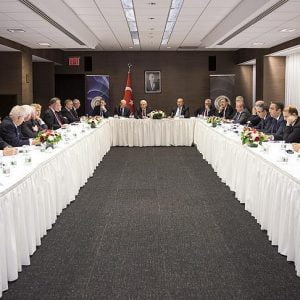 وحضر الاجتماع كل من نائب رئيس الوزراء، محمد شيمشك، ووزير الخارجية، مولود جاويش أوغلو، ووزير الطاقة، براءت ألبيرق، ونائبا حزب العدالة والتنمية عن مدينة إسطنبول؛ فولكان بوزقر، ومصطفى شنطوب، بالإضافة إلى ممثل أنقرة الدائم لدى الأمم المتحدة، فريدون سنرلي أوغلو، والقنصل التركي في نيويورك، أرطان يالتشن.