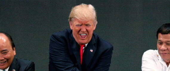 كسر الرئيس الأميركي دونالد ترامب، الإثنين 13 نوفمبر/تشرين الثاني 2017، سلسلة المصافحة خلال التقاط الصورة التذكارية للقادة المشاركين في قمة رابطة دول جنوب شرق آسيا (آسيان)، عندما فشل في الإمساك بأيدي الزعيمين الواقفين على جانبيه بالشكل الصحيح.