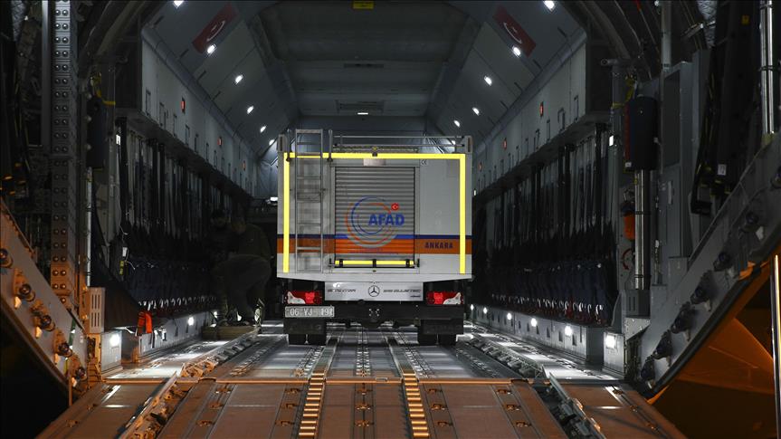 أقلعت طائرة شحن عسكرية تركية من العاصمة أنقرة متجهة إلى مدينة السليمانية شمالي العراق، وعلى متنها طواقم بحث وإنقاذ ووحدة طبية تحت تنسيق إدارة الكوارث والطوارئ التركية (أفاد).