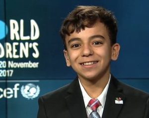 طفل سوري من درعا مهد الثورة السورية، مثَّل أطفال العالم في مؤتمر عالمي تابع لمنظمة الأمم المتحدة للطفولة اليونسيف، وعبرت كلماته عن معاناة الأطفال في بلاده، ولكن هناك مفاجأة في انتظاره في هذه اللحظة التاريخية.