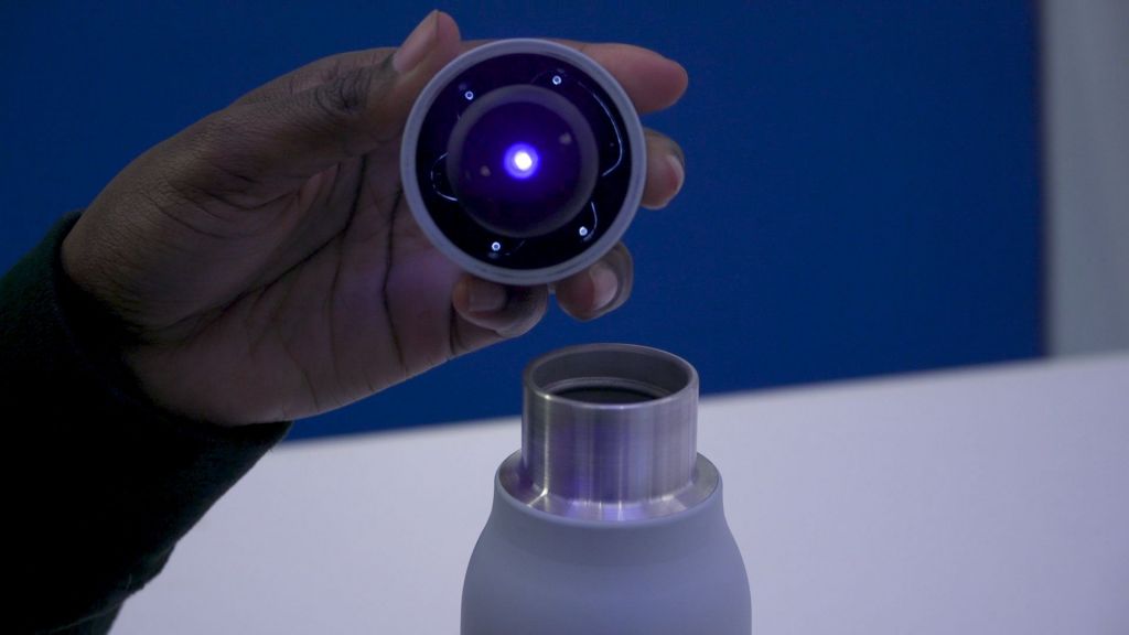 وتعمل مصابيح الأشعة فوق البنفسجية على تنظيف الزجاجة وتعقيم الماء من البكتيريا والجراثيم، بمجرد كبسة إصبع على الغطاء من أعلى، لتقوم التقنية بوظيفتها في دقيقة واحدة فقط.