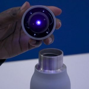 وتعمل مصابيح الأشعة فوق البنفسجية على تنظيف الزجاجة وتعقيم الماء من البكتيريا والجراثيم، بمجرد كبسة إصبع على الغطاء من أعلى، لتقوم التقنية بوظيفتها في دقيقة واحدة فقط.