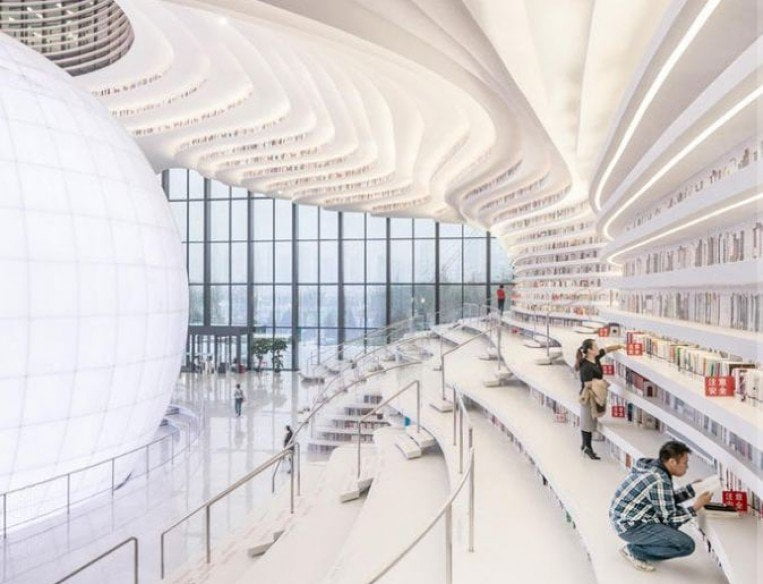 وقد كشف مؤخراً عن مكتبة Tianjin Binhai العامة الواقعة فى شمال شرقي الصين، باهتمام واسع النطاق بعد عملية استمرت ثلاث سنوات؛ للمساعدة على بناء مجمع ثقافي في مدينة تيانجين.