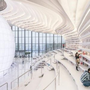 وقد كشف مؤخراً عن مكتبة Tianjin Binhai العامة الواقعة فى شمال شرقي الصين، باهتمام واسع النطاق بعد عملية استمرت ثلاث سنوات؛ للمساعدة على بناء مجمع ثقافي في مدينة تيانجين.
