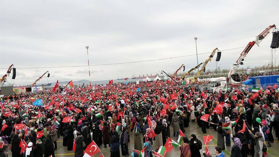 ويشارك مئات الآلاف في المظاهرة التي دعا لها أكثر من 120 منظمة مدنية أبرزها منظمة الإغاثة الإنسانية التركية، بالإضافة إلى حزب سياسي هو السعادة (أسسه رئيس الوزراء الراحل نجم الدين أربكان).