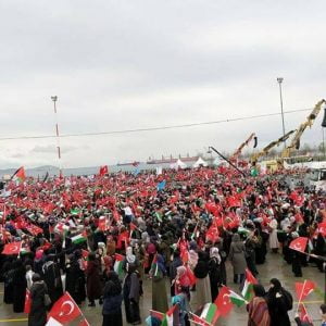 ويشارك مئات الآلاف في المظاهرة التي دعا لها أكثر من 120 منظمة مدنية أبرزها منظمة الإغاثة الإنسانية التركية، بالإضافة إلى حزب سياسي هو السعادة (أسسه رئيس الوزراء الراحل نجم الدين أربكان).