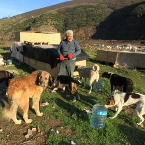 وقال أويار (68 عاماً) للأناضول، “أشتري الخشب الرقائقي من مالي الخاص، وأجمع الأغطية والسجادات البالية من مخازن النفايات وأصنع أكواخاً للكلاب السائبة لتنام فيها أثناء البرد القارص”.