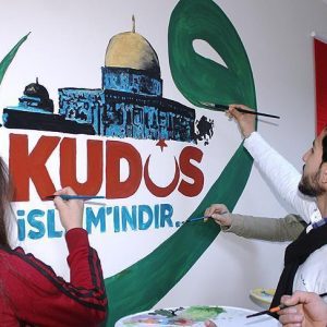 وعقب القرار الأمريكي المذكور، قام مجموعة شباب سوريين برسم “القدس إسلامية” على جدران مركز شبابي يعملون فيه بشكل تطوعي مع الشباب الأتراك بولاية عثمانية جنوبي البلاد.
