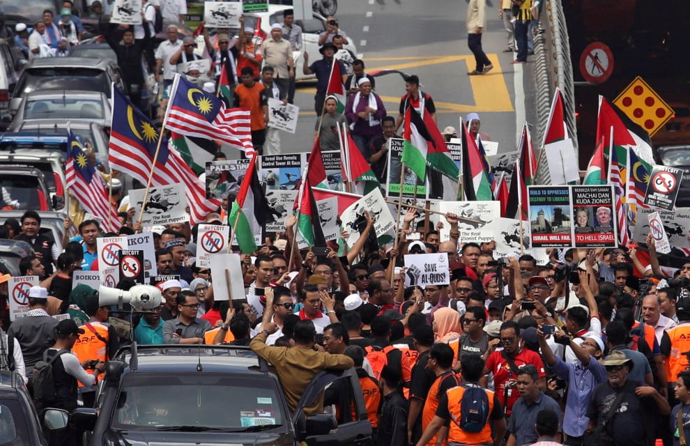رئيس وزراء ماليزيا بمظاهرة تضامنية مع القدس: لن نخاف الولايات المتحدة وسنفعل كل ما بوسعنا لإنقاذ القدس