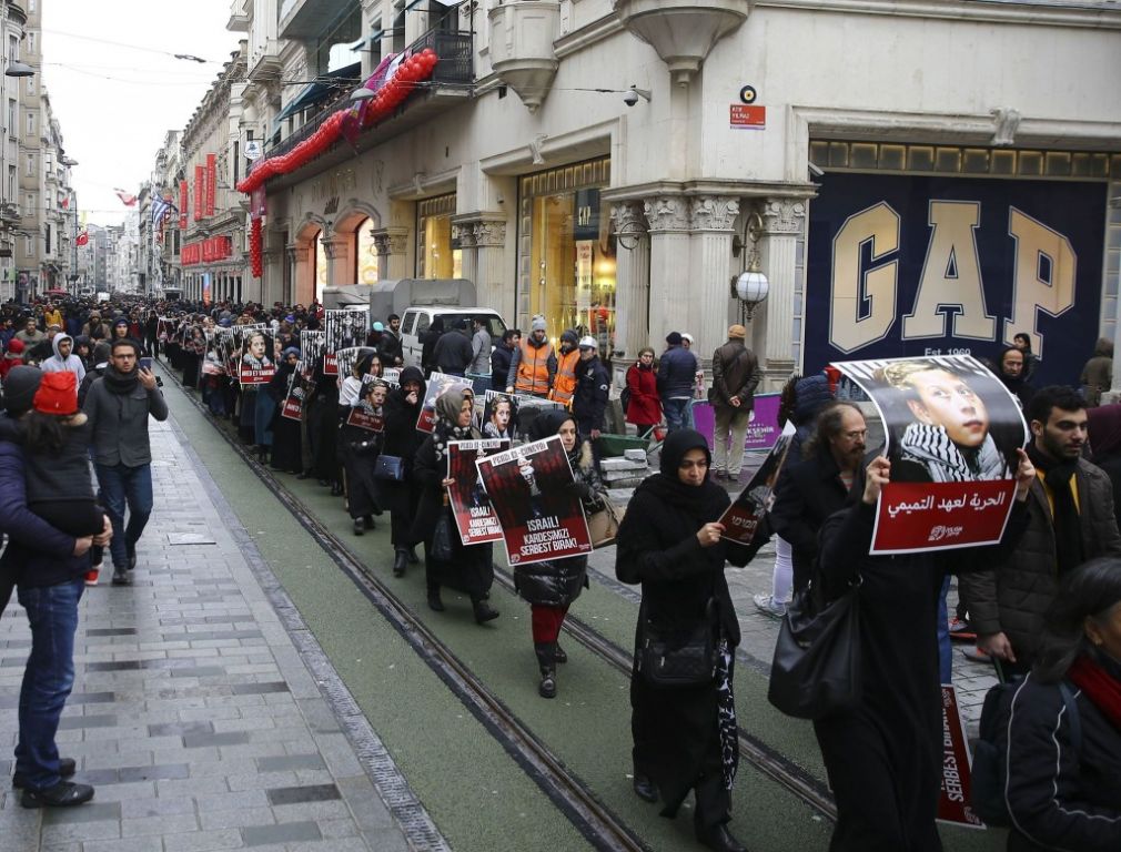 انطلقت بعد ظهر اليوم السبت، مظاهرةً صامتة في مدينة إسطنبول، تضامناً مع الطفلة الفلسطينية عهد التميمي (16 عام) التي اعتقلها الجيش الإسرائيلي قبل أيام.