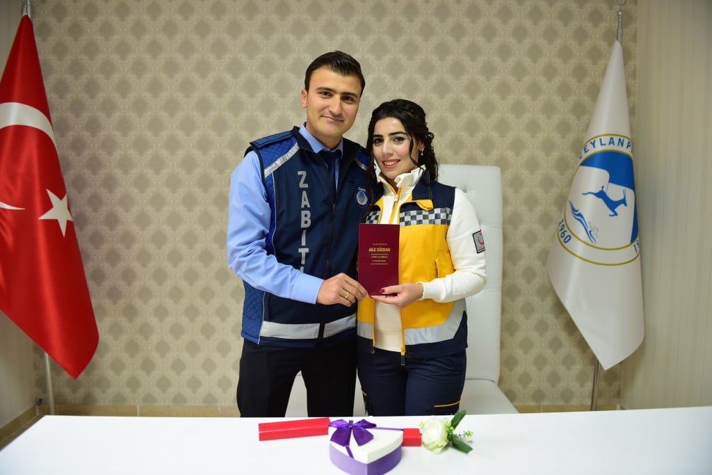 وعقد الزوجان قرانهما في صالة الأفراح التابعة لبلدية “جيلان بينار”، بحضور عدد من زملائهما في العمل.