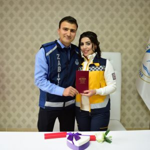 وعقد الزوجان قرانهما في صالة الأفراح التابعة لبلدية “جيلان بينار”، بحضور عدد من زملائهما في العمل.
