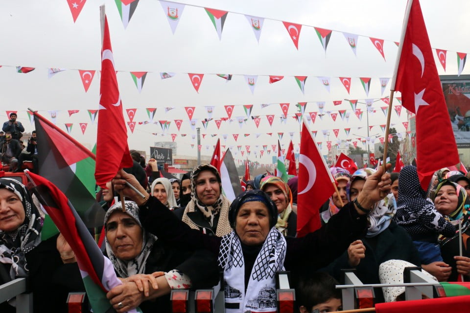 وتوافد آلاف الأشخاص إلى ساحة “توبجو” التي احتضت التجمع الجماهيري بإشراف رئاسة بلدية شانلي أورفة وهيئة الإغاثة التركية (İHH)، وعدد من منظمات المجتمع المدني التركية.