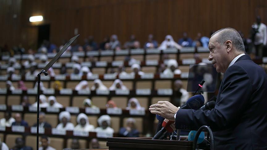 جاء ذلك في كلمة ألقاها أردوغان، أمام البرلمان السوداني، على هامش زيارة يجريها للسودان تستغرق يومين.