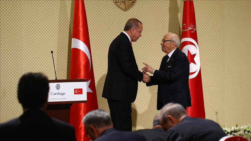 وأمس الأول الاثنين، أفادت الرئاسة التونسية في بيان، أن “زيارة الدولة” التي يجريها الرئيس أردوغان، تأتي تلبيةً لدعوة من نظيره التونسي الباجي قايد السبسي.