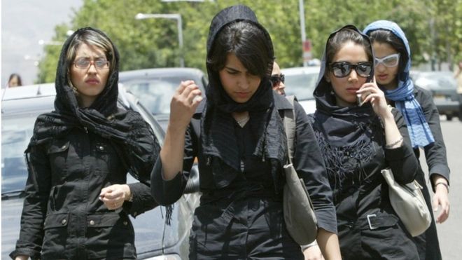 وتطبق إيران منذ قيام الثورة الإيرانية عام 1979 تقييدا على زي النساء تتابعه شرطة الآداب العامة التي تعمل على التزام المواطنين بالزي الإسلامي بما في ذلك غطاء الرأس للمرأة.