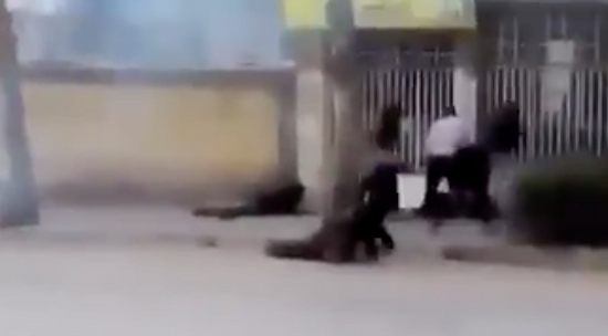 ويظهر في الفيديو أشخاص وهم يهربون للاحتماء من وابل الرصاص، فيما ظهر آخرون وهم يحاولون جر من أصيبوا بإطلاق النار.