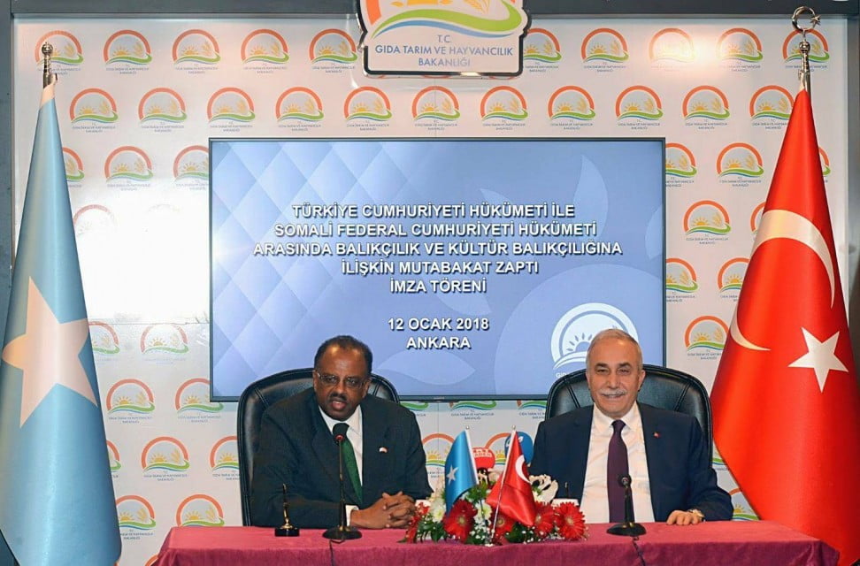 ووقع الاتفاقية عن الجانب التركي وزير الزراعة والثروة الحيوانية، أحمد أشرف فاكيبابا، وعن الجانب الصومالي وزير الثروة السمكية والموارد البحرية عبد الرحمن محمد عبده حاشي، على الاتفاقية، خلال مراسم في العاصمة التركية أنقرة.