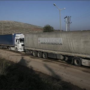 وعبرت الشاحنات اليوم الاثنين من معبر جيلوه غوزو، بولاية هطاي، المقابل لمعبر باب الهوى في الجانب السوري.