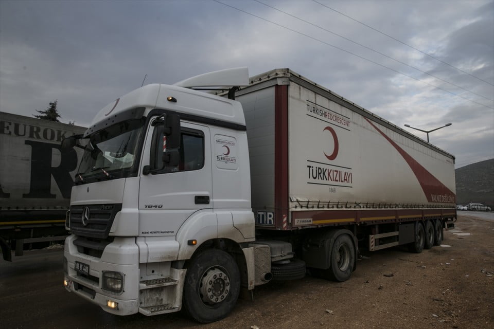 وعبرت شاحنات المساعدات الإنسانية، التي جمعها الهلال الأحمر التركي وإدارة الكوراث والطوارئ التركية (آفاد)، إلى إدلب، عن طريق معبر “جيلوة غوزو” في ولاية هطاي (جنوب).