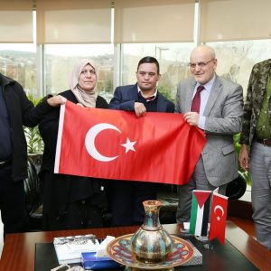 وقطع الطويل ورئيس البلدية، قالب حلوى في هذه المناسبة، وسط فرحة وتصفيق الحاضرين. وفي نهاية الزيارة أهدى “تشليك بيلك”، الفلسطيني الطويل، علما لتركيا، وقميصا.