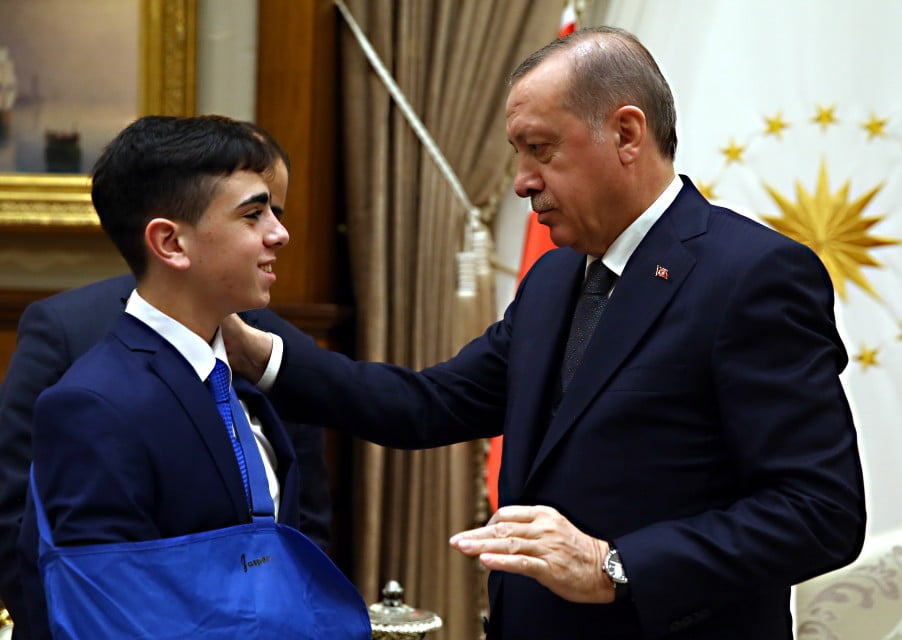 واستقبل الرئيس التركي رجب طيب أردوغان، الأربعاء، الطفل الجنيدي، في المجمع الرئاسي بأنقرة.