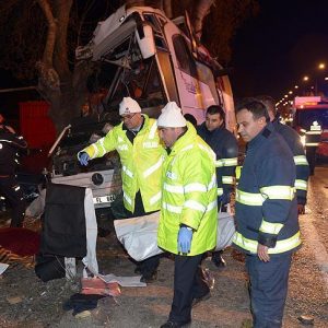 لقي 13 شخصا حتفهم وأصيب 42 آخرون بجروح، إثر خروج حافلة ركاب، عن مسارها واصطدامها بالأشجار، بولاية أسكي شهير وسط تركيا.