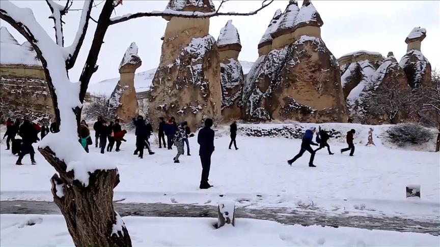 ثلوج كبادوكيا تجتذب السياح في عطلة منتصف العام الدراسي