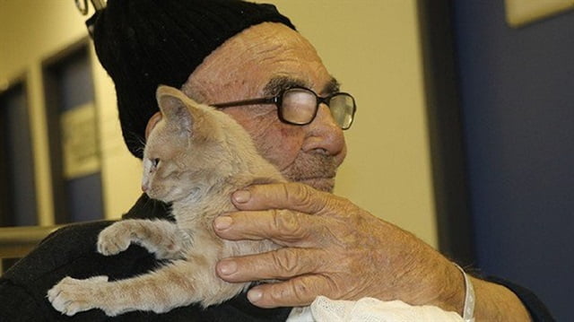 صورة مسن تركي يحتضن قطته تحظى بتعاطف العالم 3