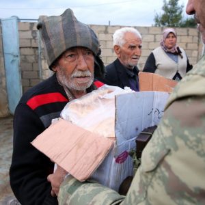 قامت وحدات من الجيش السوري الحر المشاركين في عملية غصن الزيتون التي أطلقتها القوات التركية في منطقة عفرين بريف محافظة حلب السورية، بتوزيع المساعدات الإنسانية على المدنيين في القرى التي تحررت من الإرهابيين.