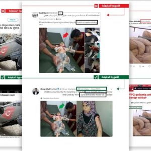 وسبق أن عمدت حسابات على مواقع التواصل موالية لـ”ب ي د/ بي كا كا”، إلى استخدام صور ادعت أنها التقطت أثناء عملية “غصن الزيتون”، ليتبين أنها التقطت في أزمنة وأماكن مختلفة.